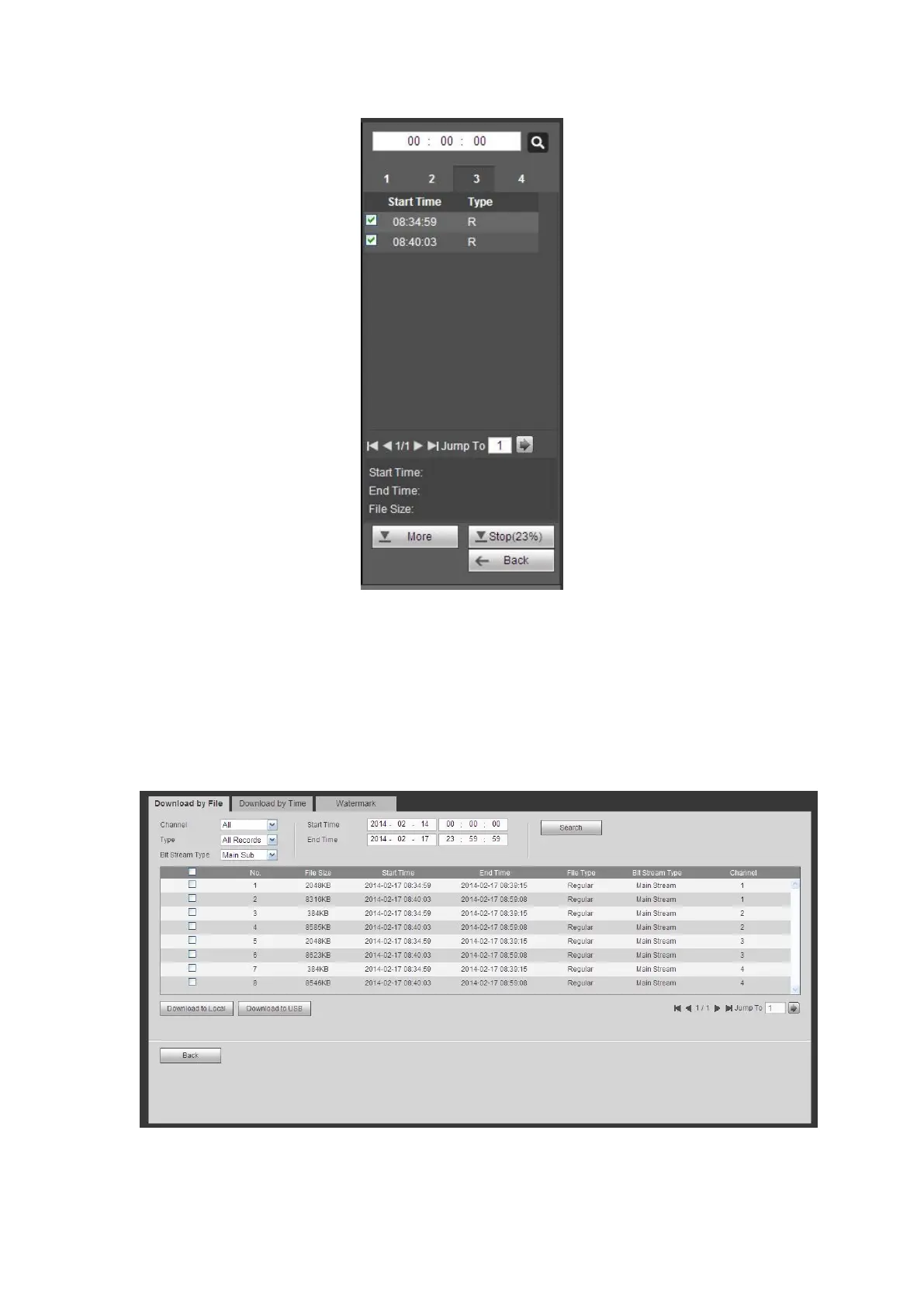 Select channel, record type, bit stream type and then input start time and end time. Click