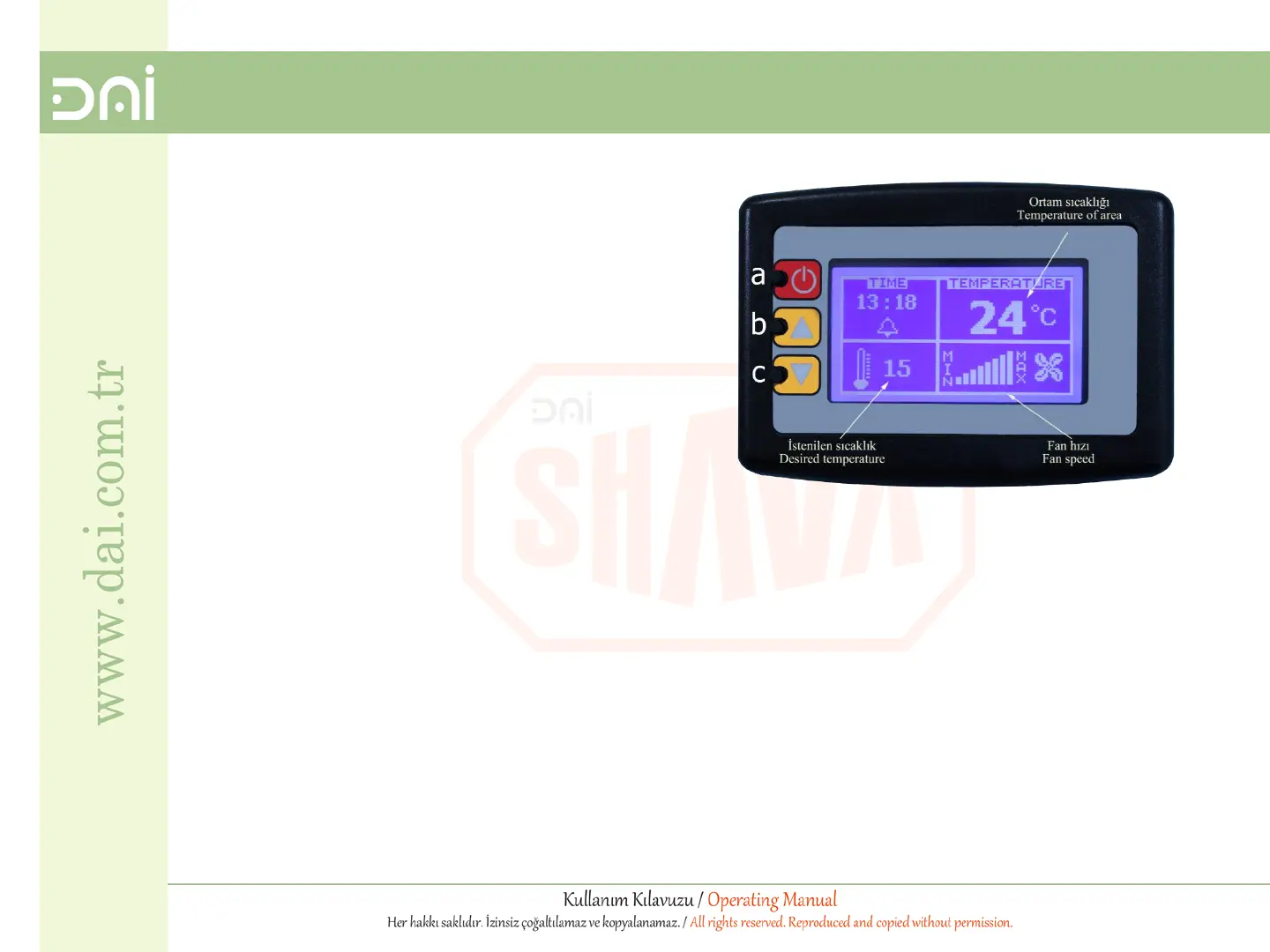 İstenilen sıcaklık ayarı için, kontrol paneli ekranı