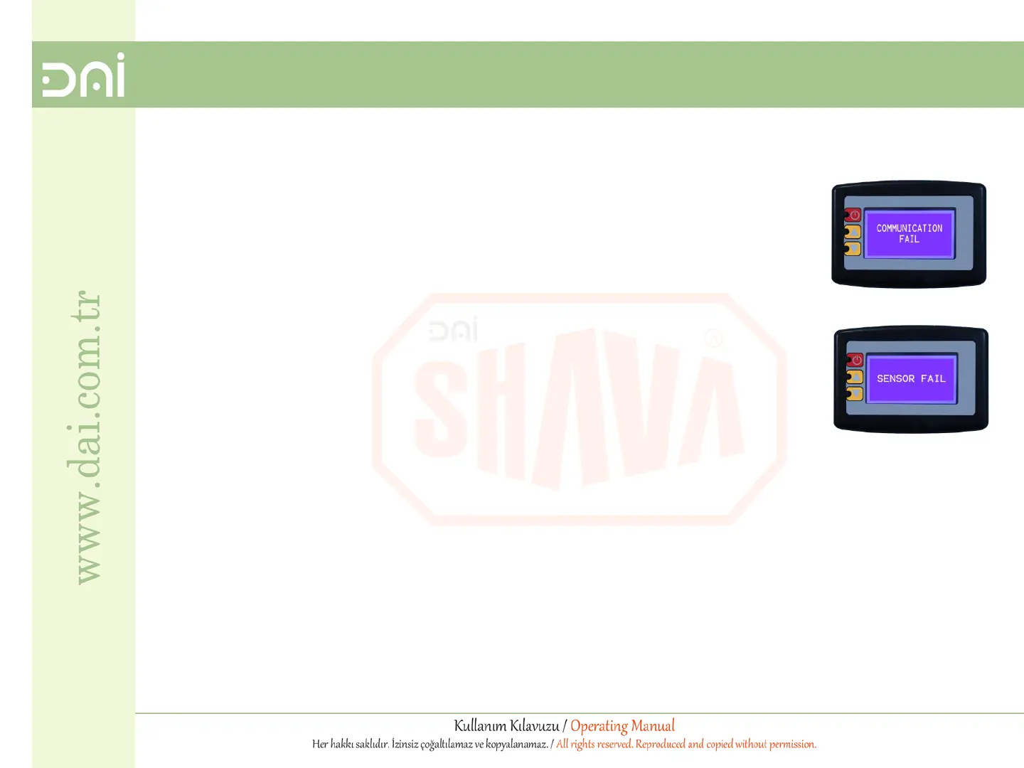 Cihazdaki sensörün çalışmaması durumunda ekranda “Sensör Arızası” uyarısı görülür.