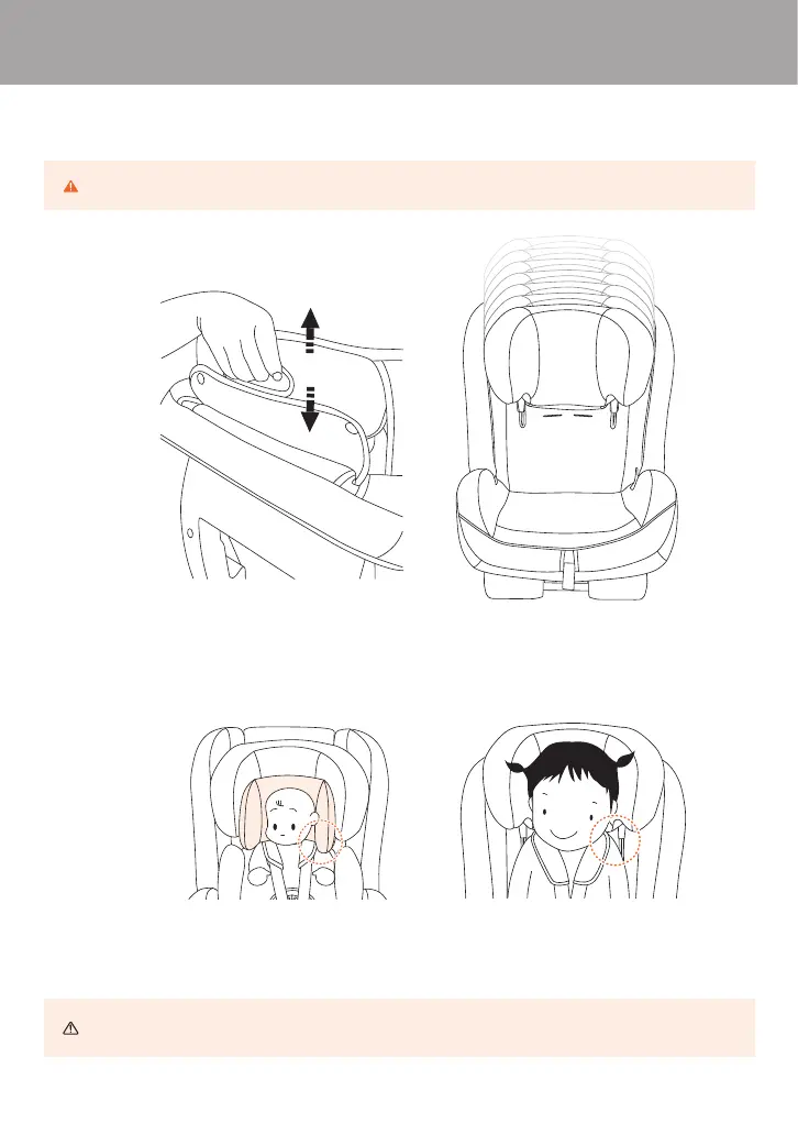 Lower part of headrest should be in the closest location from baby’s shoulder.