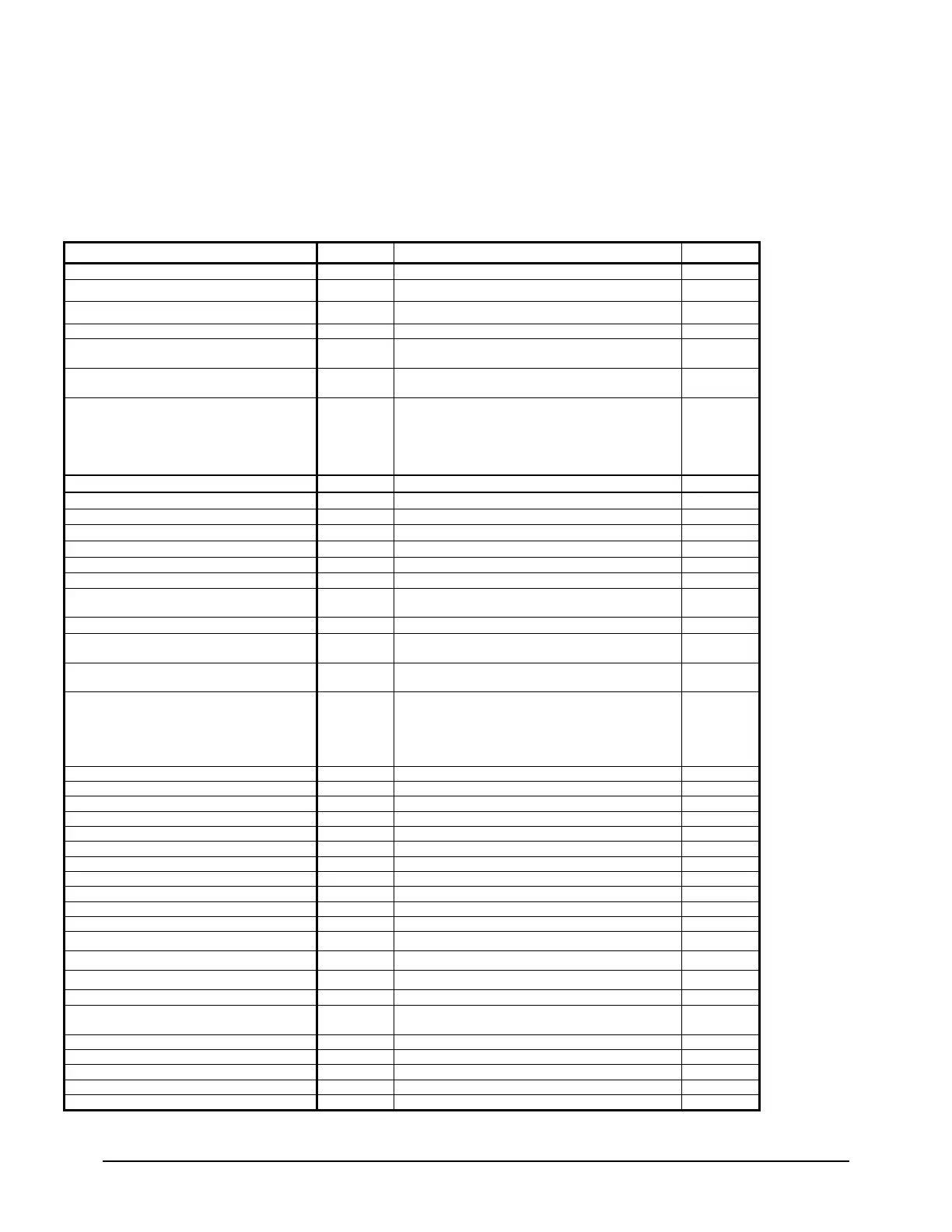 The PW (password) column indicates the password level that must be active in order to change the setpoint.