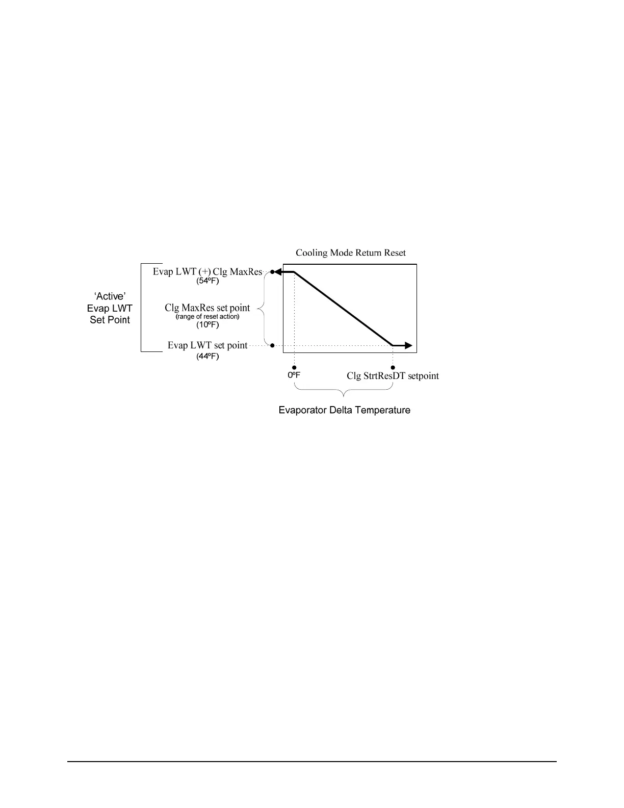 point to the sum of Evap LWT (+) Cooling Maximum Reset set points as the evaporator delta temperature