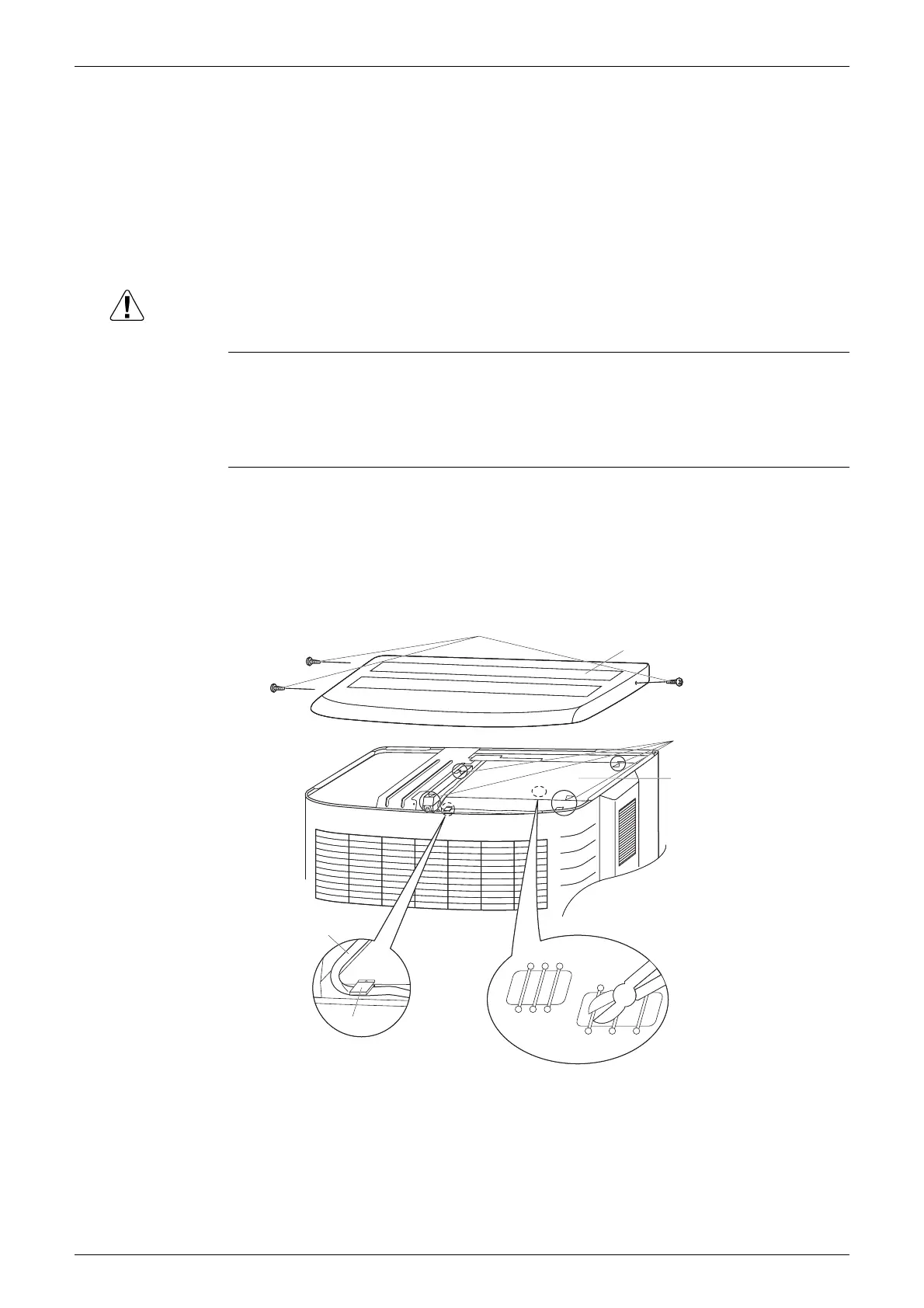 1) Remove the three screws on the side and remove the top of the outdoor unit.