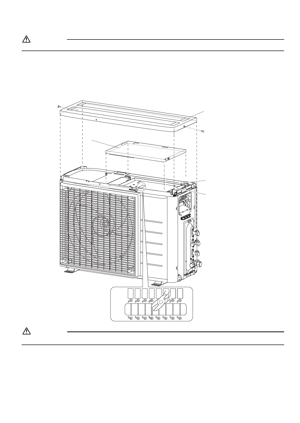 1) Remove the two screws on the side and remove the top plate of the outdoor unit.