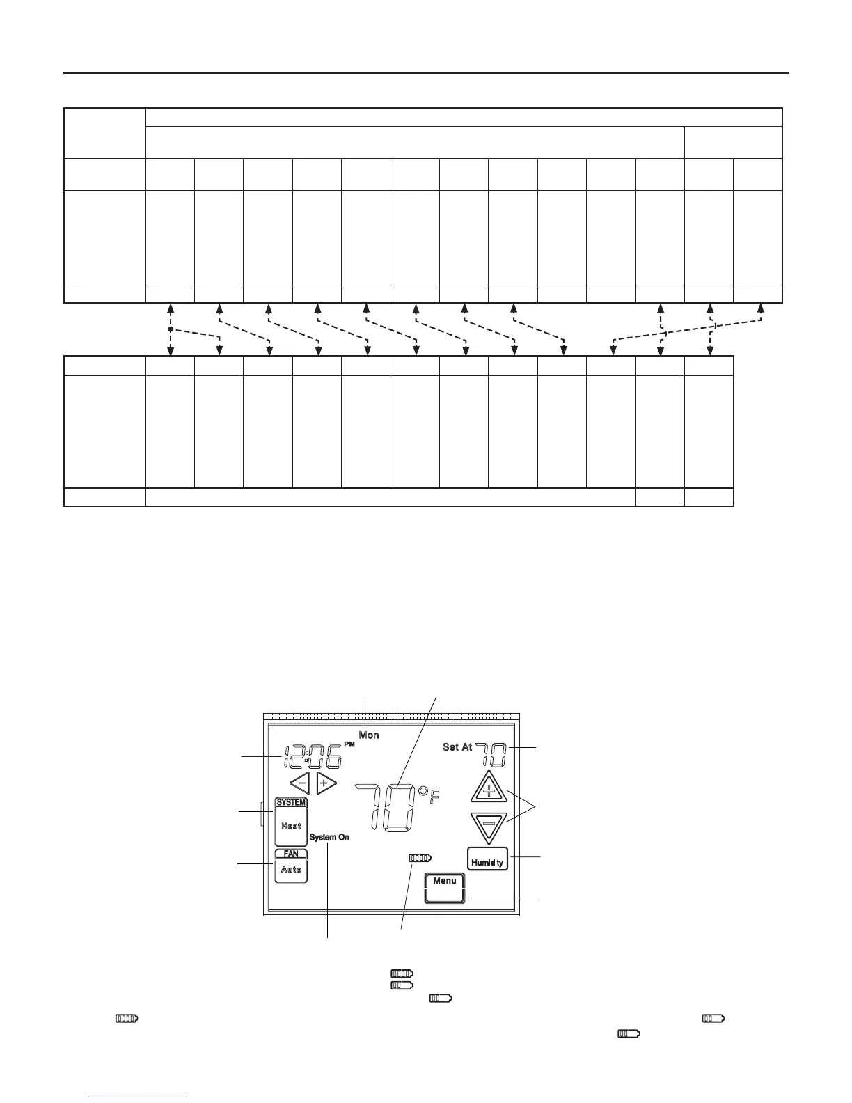Note: If isdisplayed,thethermostatisbatterypowered.Whenbatterypowerremainingisapproximatelyhalf, willbe