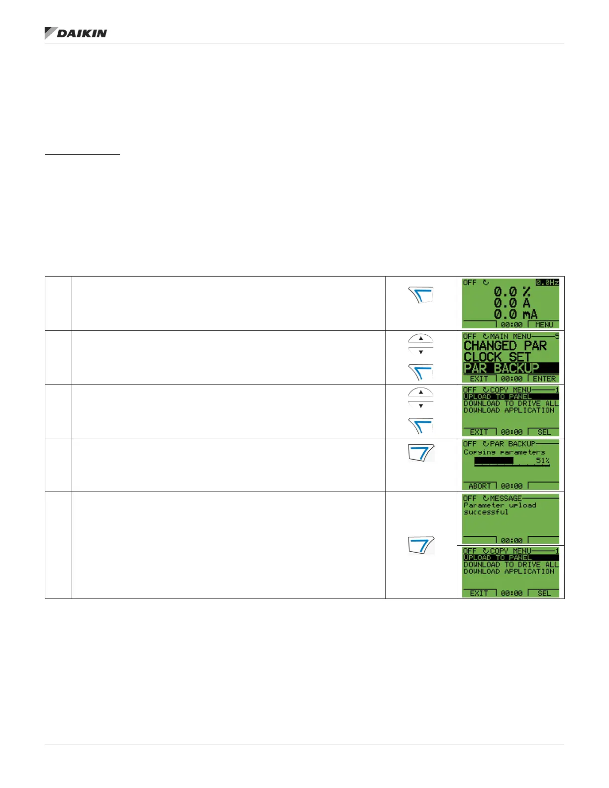 Select PAR BACKUP with the UP/DOWN buttons and select ENTER.
