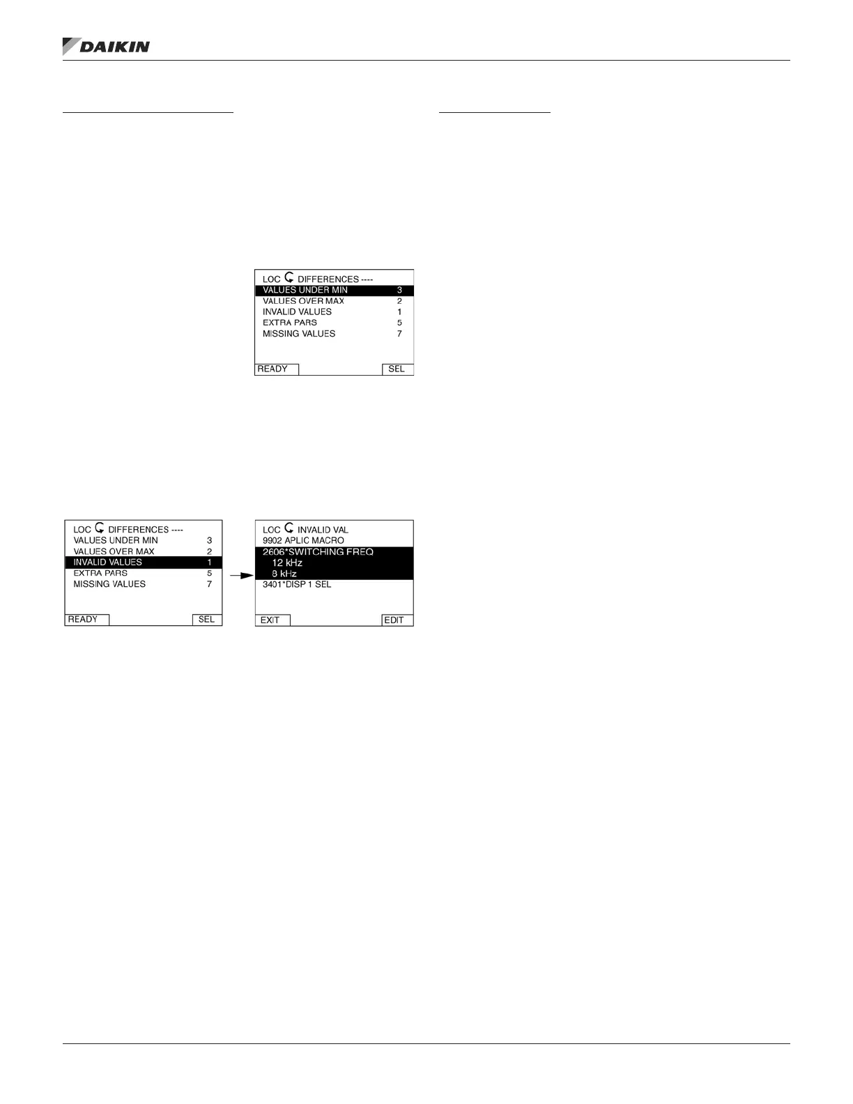 6. Press EXIT to step back to the differences view and