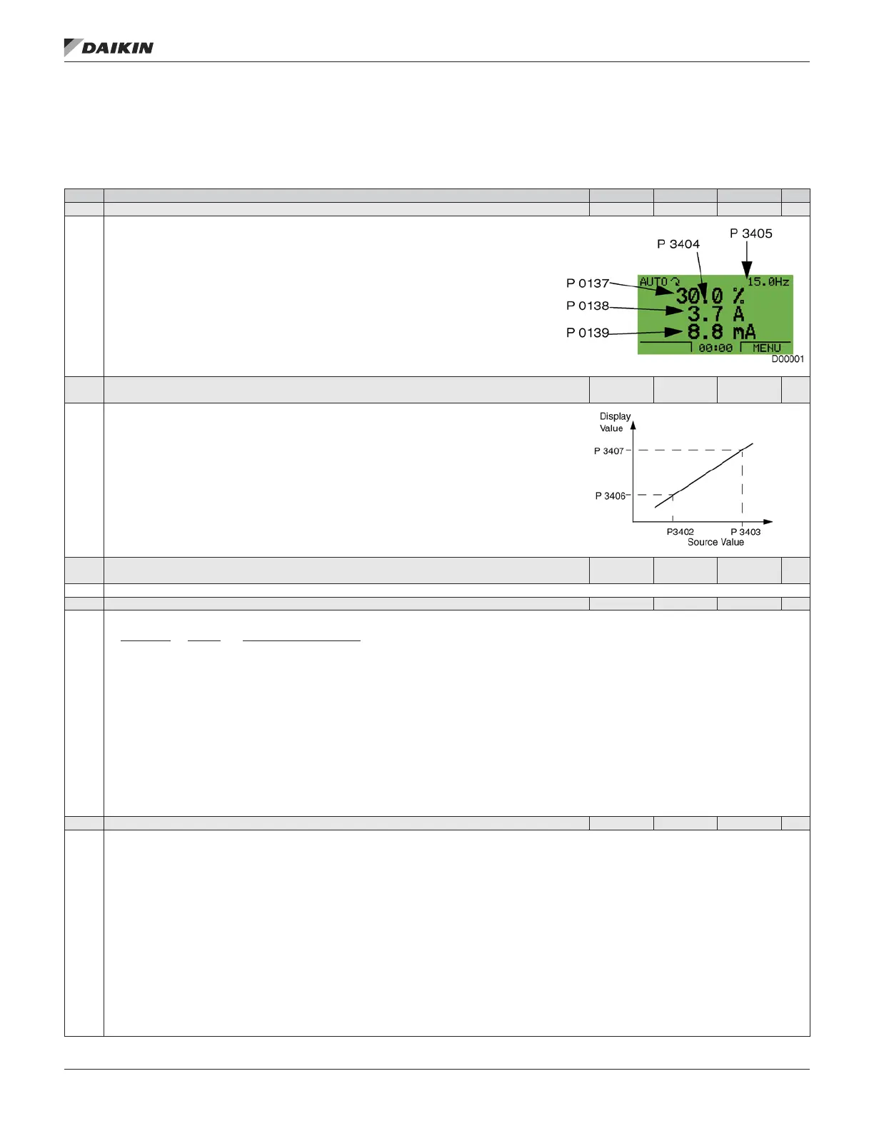 Denes the minimum expected value for the rst display parameter. Use parameters 3402, 3403,
