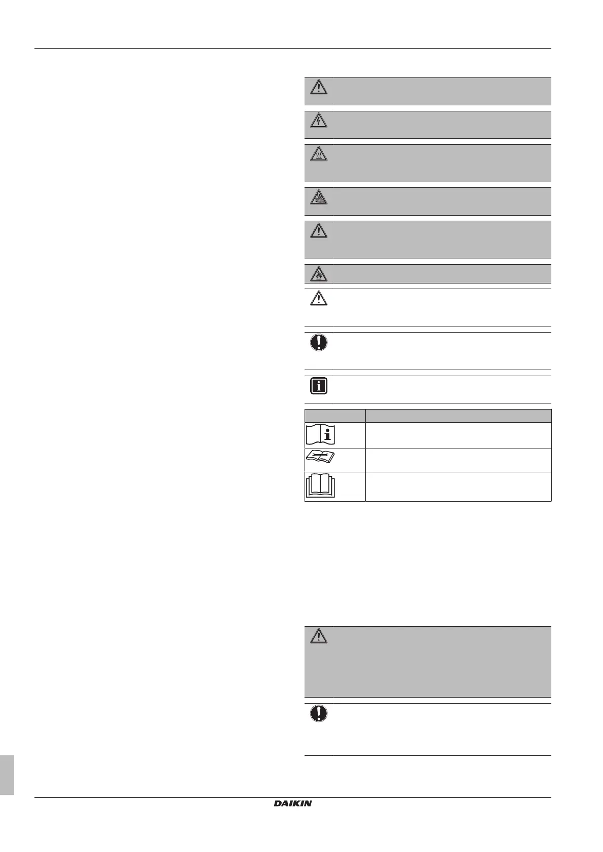 Daikin ADEA71A2VEB - Table of Contents; General Safety Precautions; About the Documentation; Meaning of Warnings and Symbols