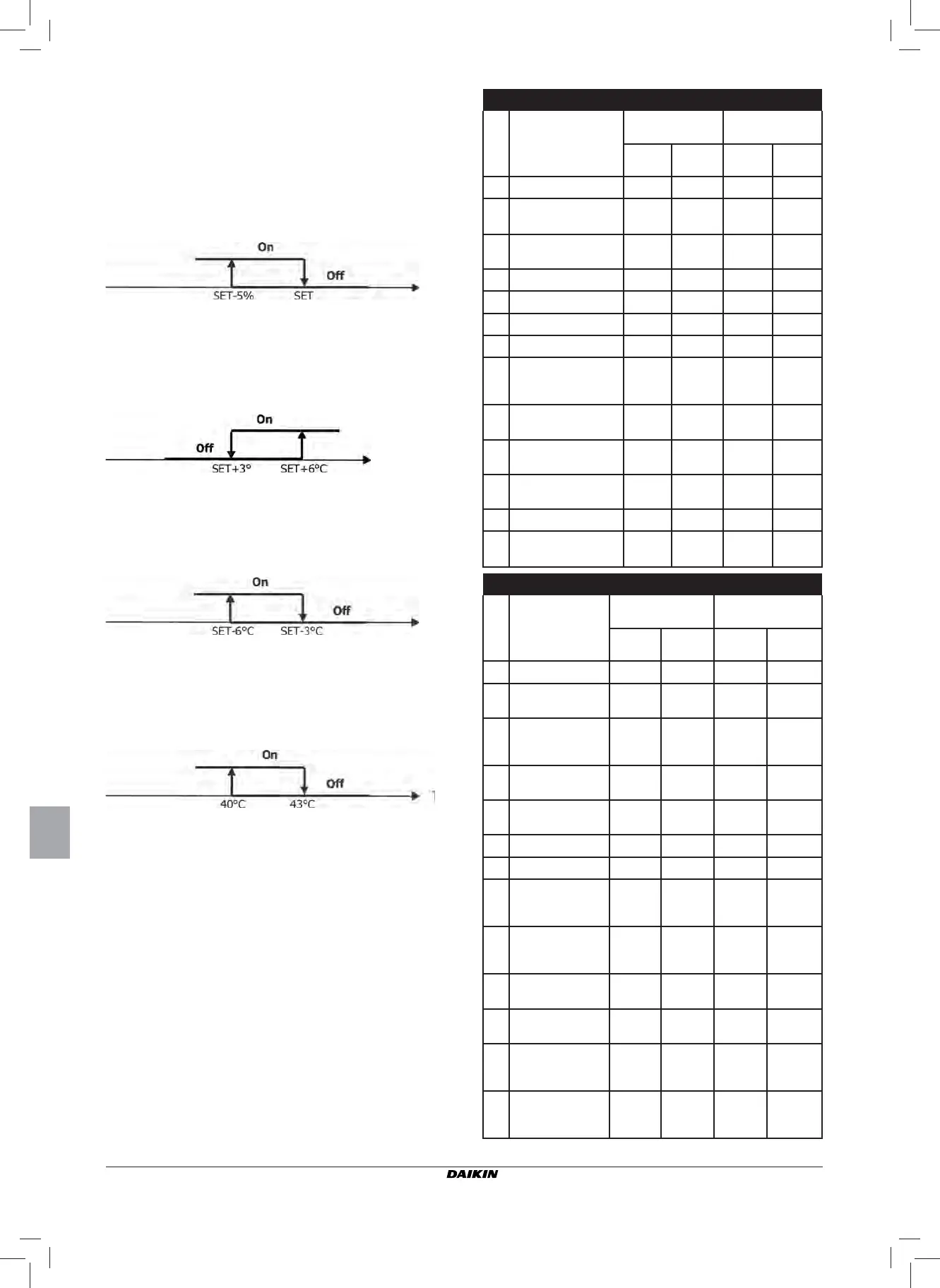 modalidad calefacción). La lógica de activación/desactivación