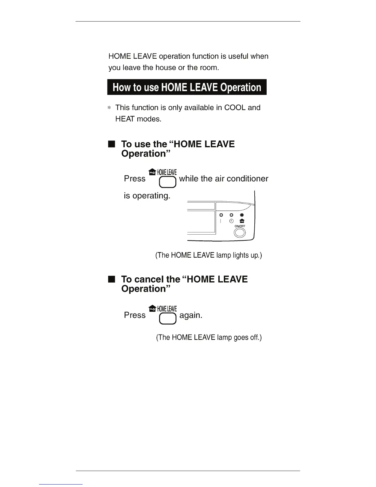 Daikin ARC417A14 - Home Leave Operation; How to Use Home Leave Operation; How to Cancel Home Leave Operation