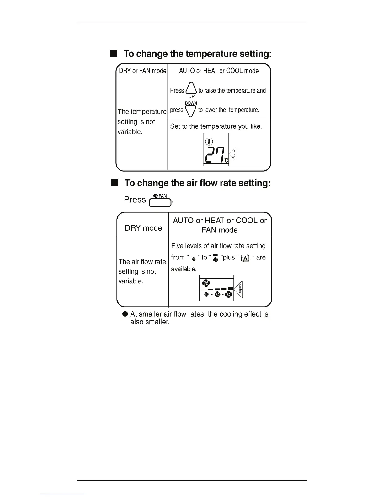 Daikin ARC417A15 - Adjusting Operation Settings; Changing Temperature and Air Flow Rate