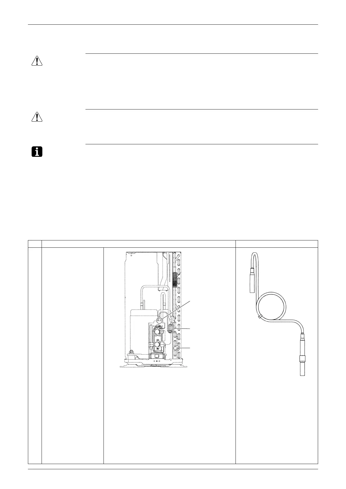 Be careful so as not to burn the compressor terminals, the name plate, the outdoor