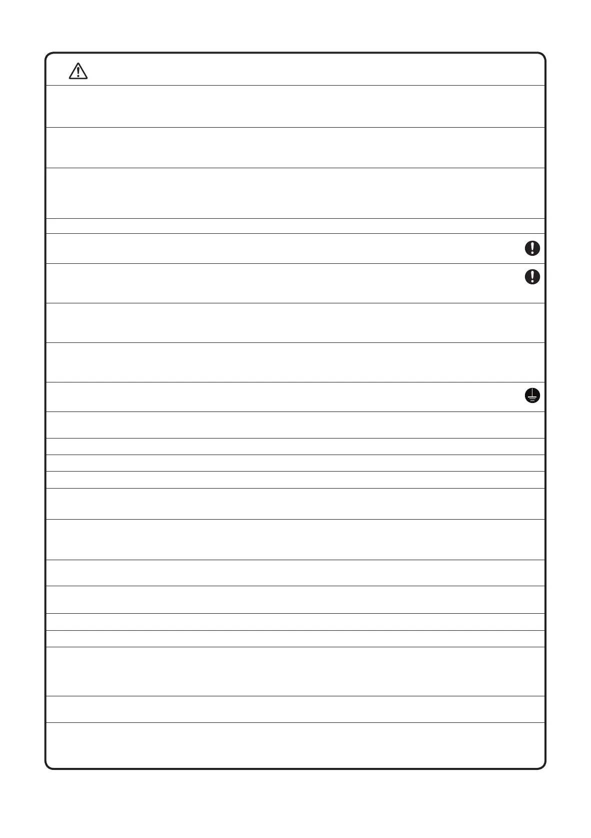 • Be sure to install an earth leakage breaker. Failure to install an earth leakage breaker may result in electrical shocks,