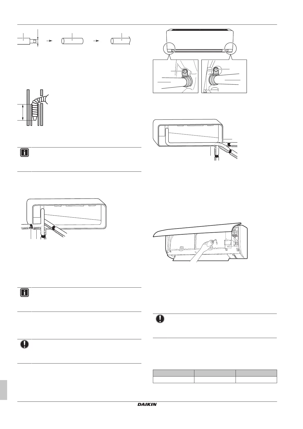 4 Attach the drain hose to the refrigerant piping bottom side using