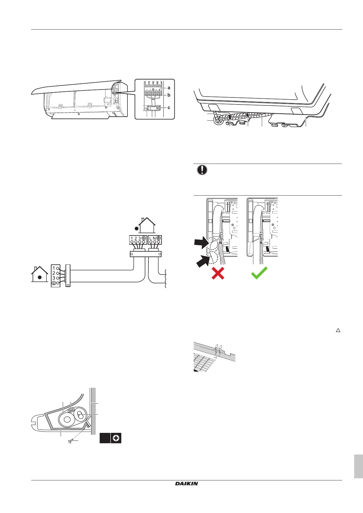 1 After the drain piping, refrigerant piping and the electrical wiring