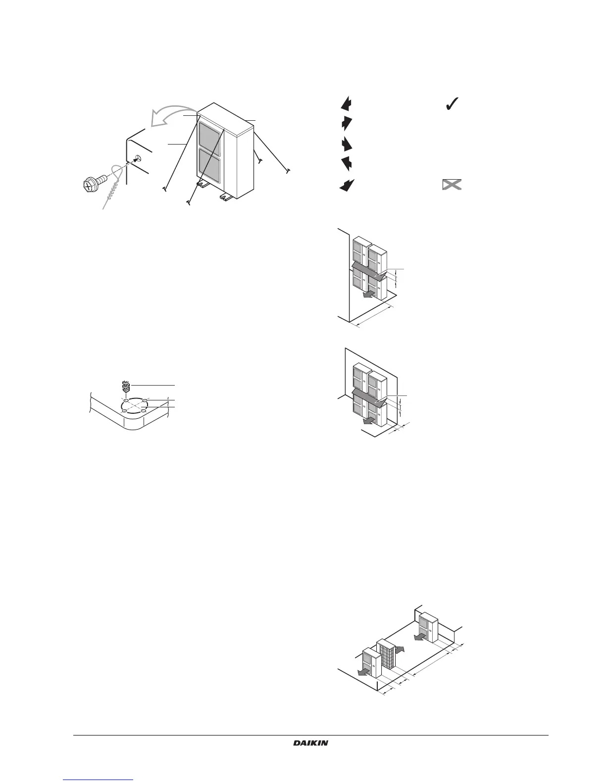Regarding the required air outlet space, position the units with