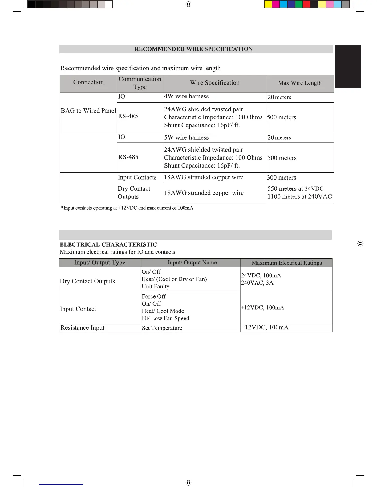 *The maximum wire length for IO communication type between BAG-Wired Panel and BAG-mainboard controller shall