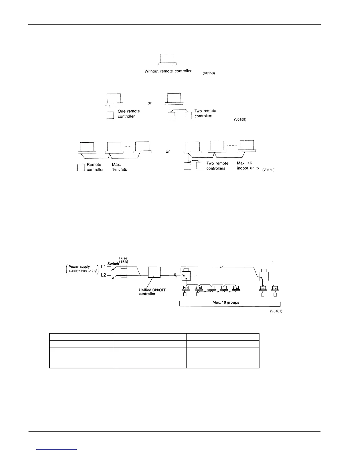 3. A maximum of 16 indoor units controlled in groups by one or two remote controllers