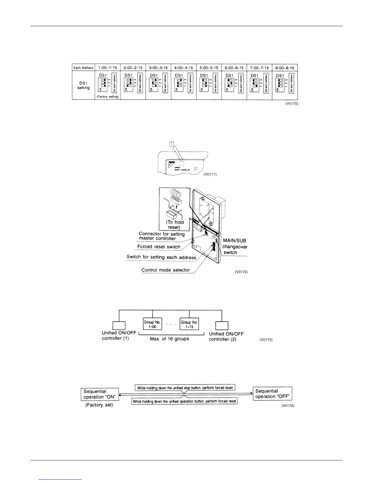 Group Numbers 1-00 through 1-15 are in the same control group when the unit is shipped from the factory.
