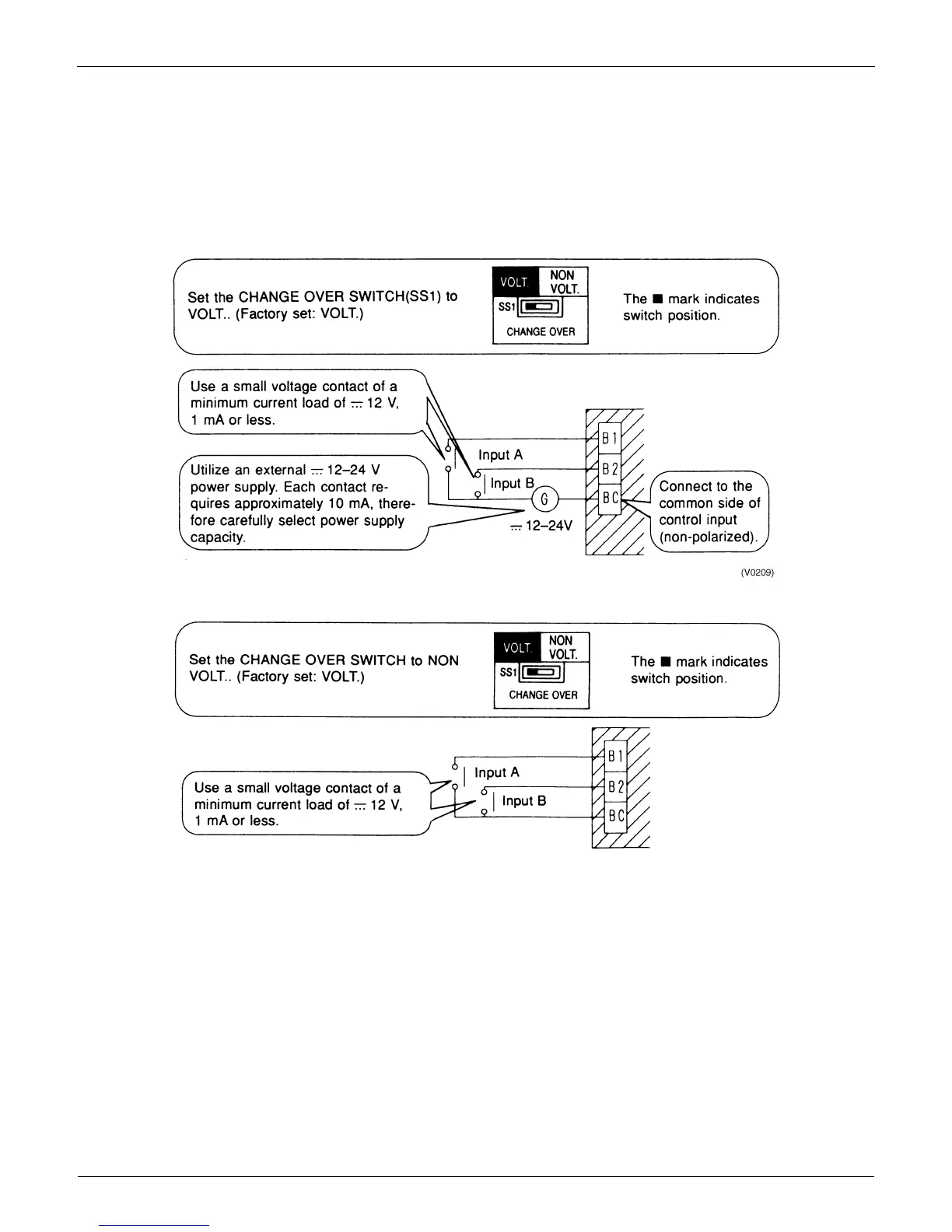 Wire according to input carrying voltage or not, as shown in the following diagrams: