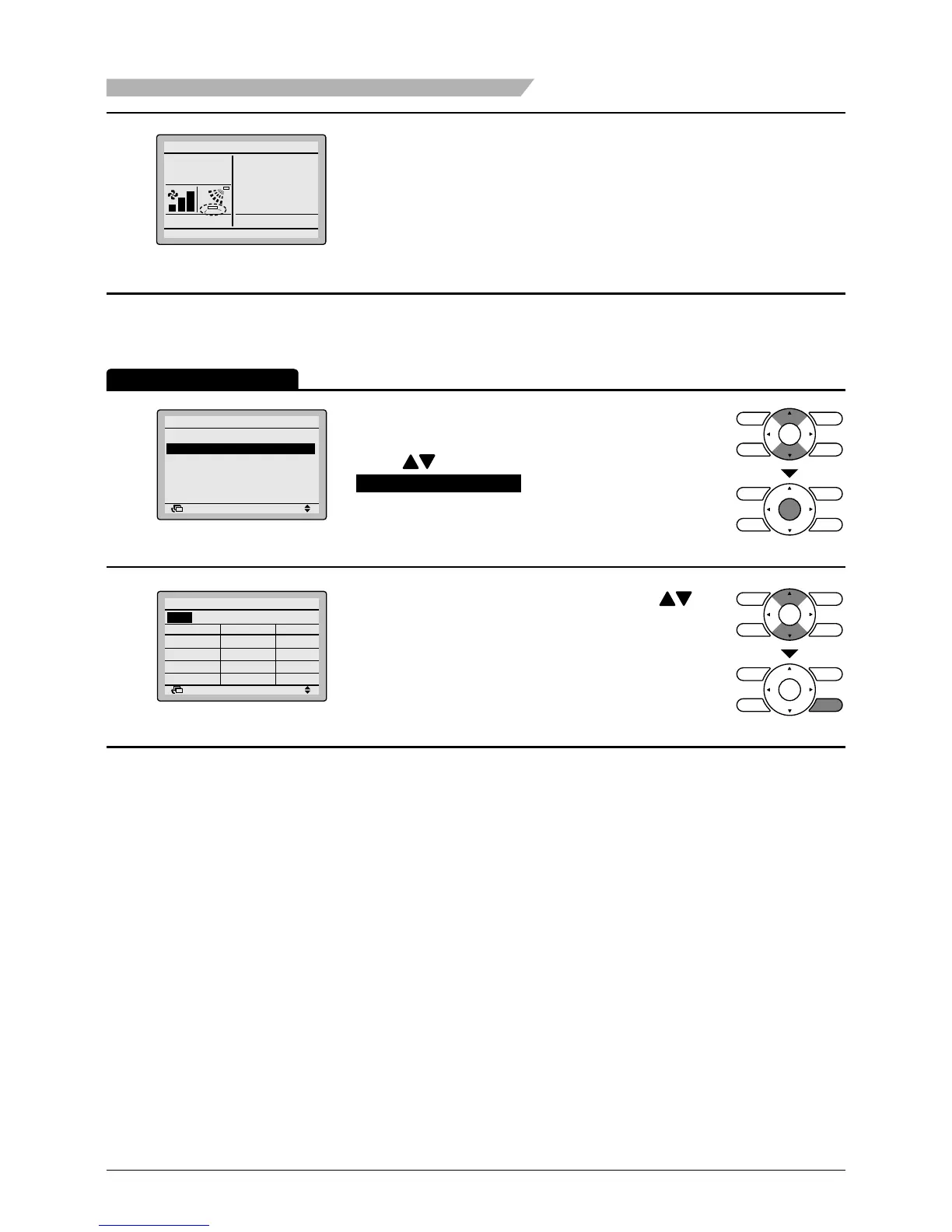 A table shows the current settings. Press