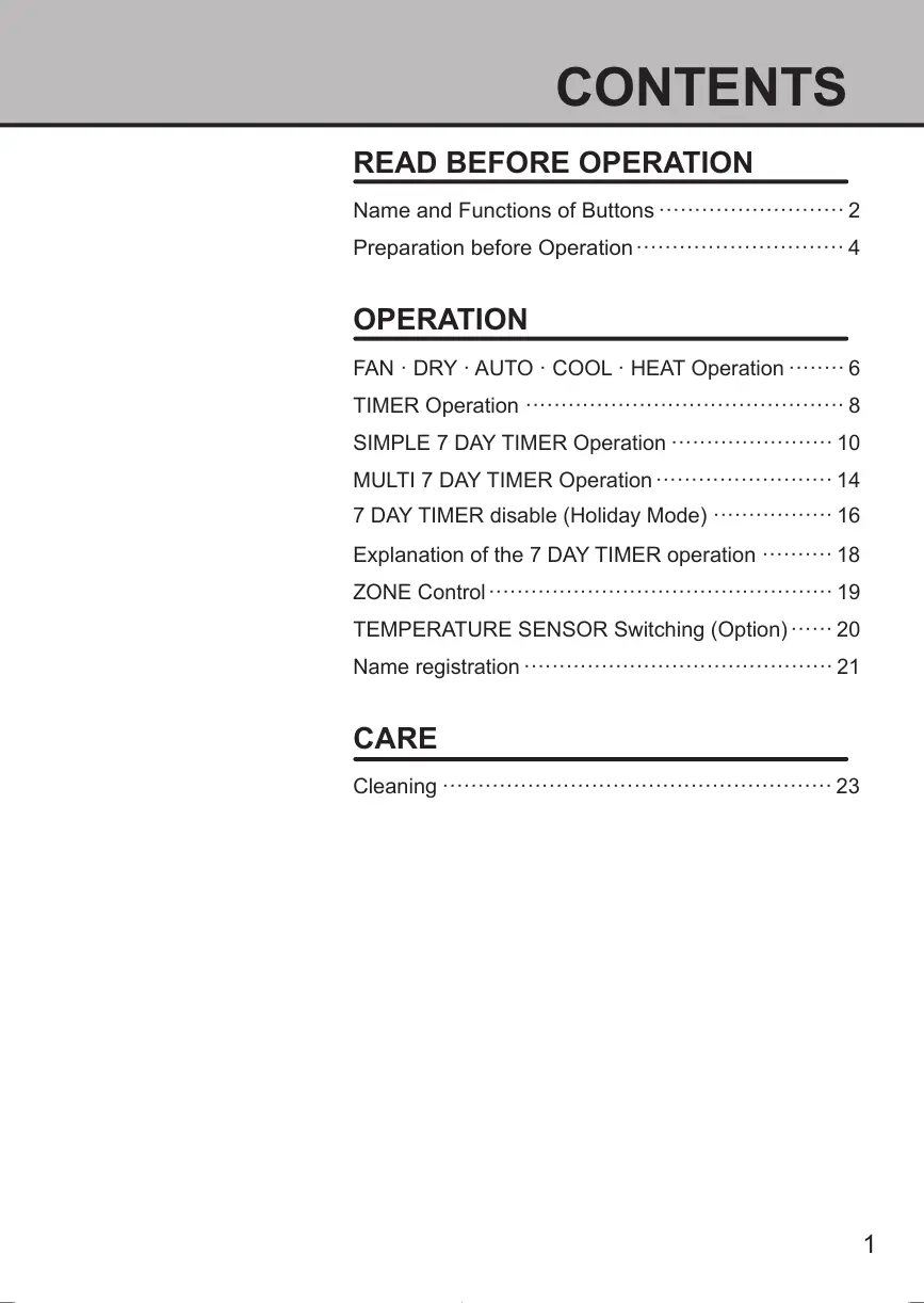 MULTI 7 DAY TIMER Operation ························· 14