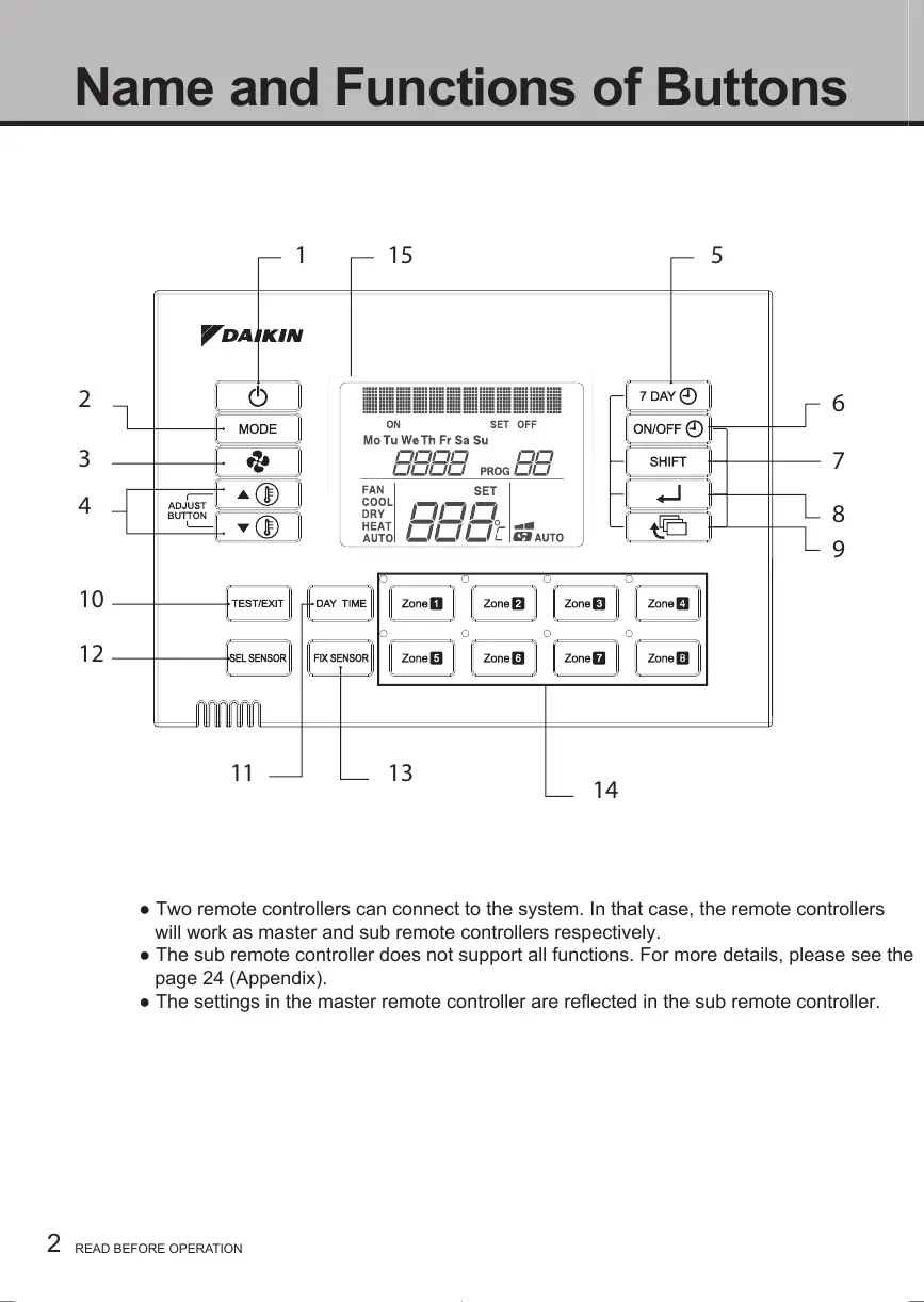 ● The settings in the master remote controller are reflected in the sub remote controller.