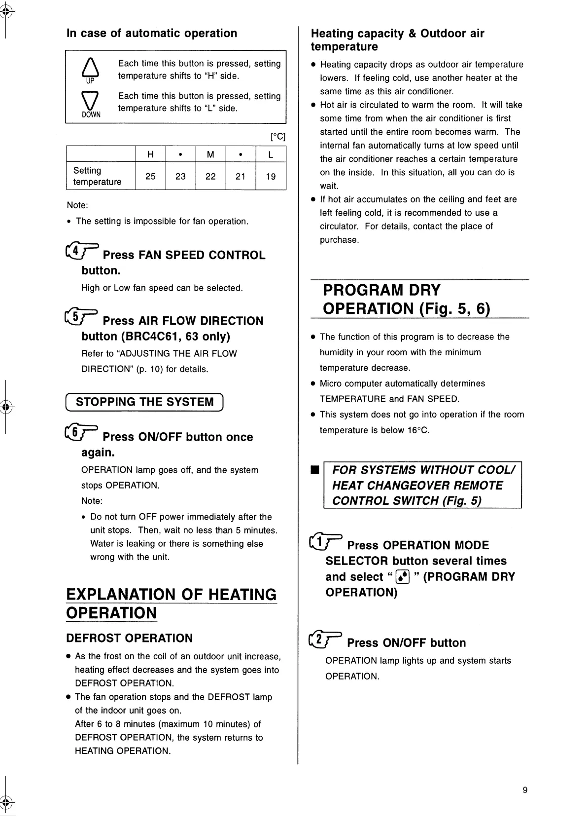 Daikin BRC4C63 - Operation Details and Modes; Automatic, Heating, and Dry Operation