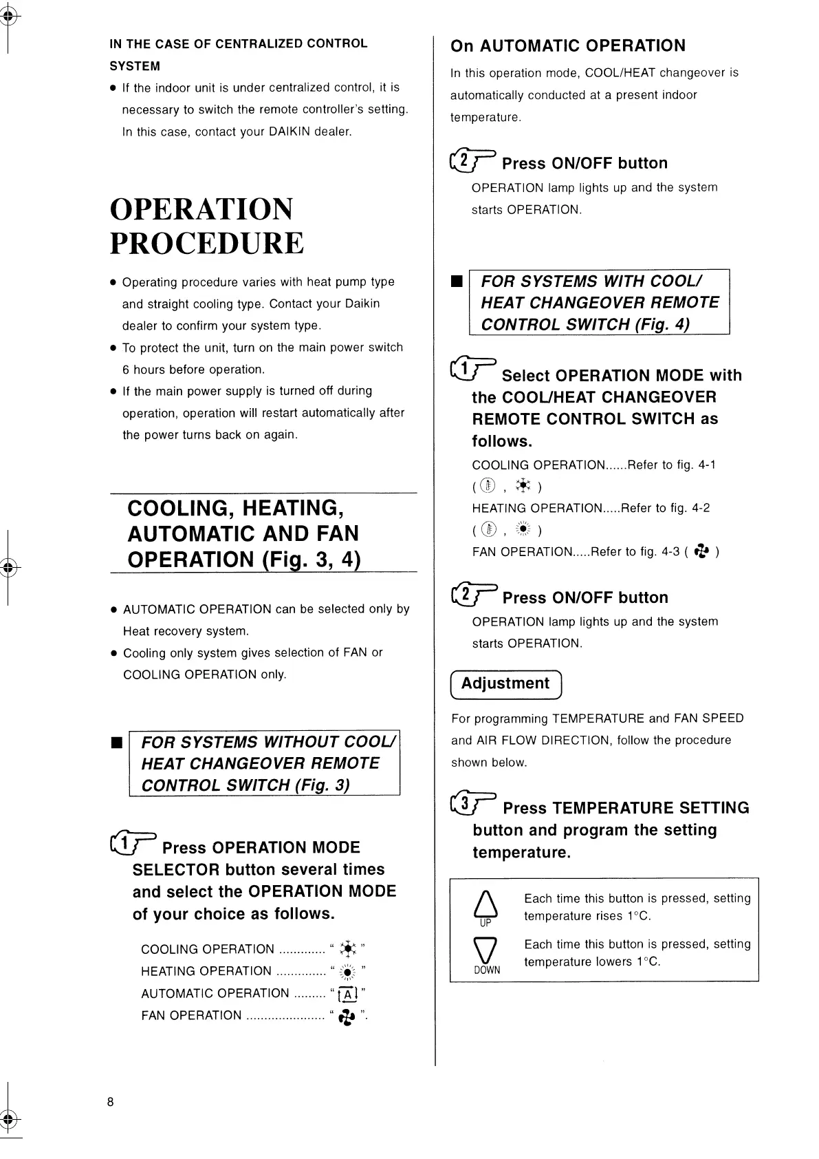 Daikin BRC4C64 - Operation Procedure; System Control Modes; System Adjustment and Settings