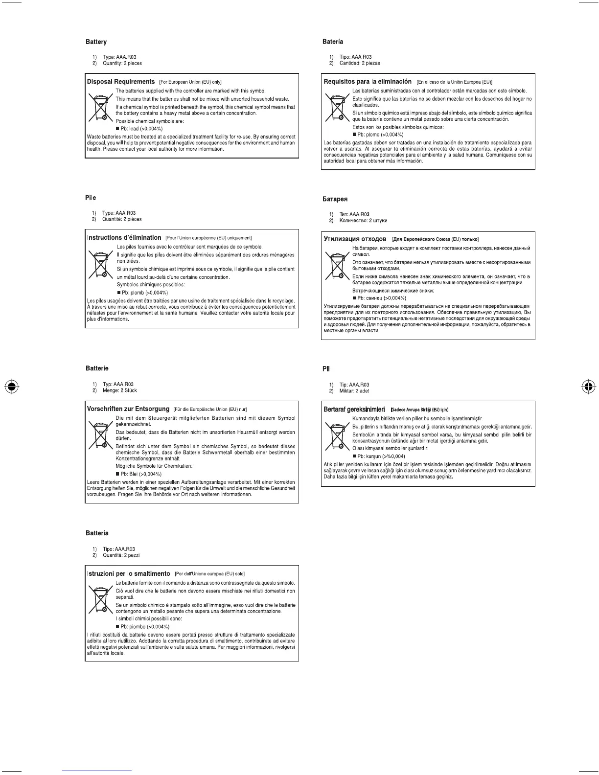 Daikin BRC51A62 - Battery Information; Disposal Requirements (EU)