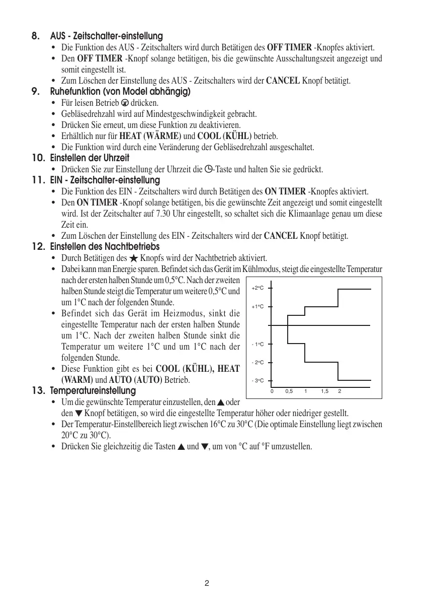 Der Temperatur-Einstellbereich liegt zwischen 16°C zu 30°C (Die optimale Einstellung liegt zwischen