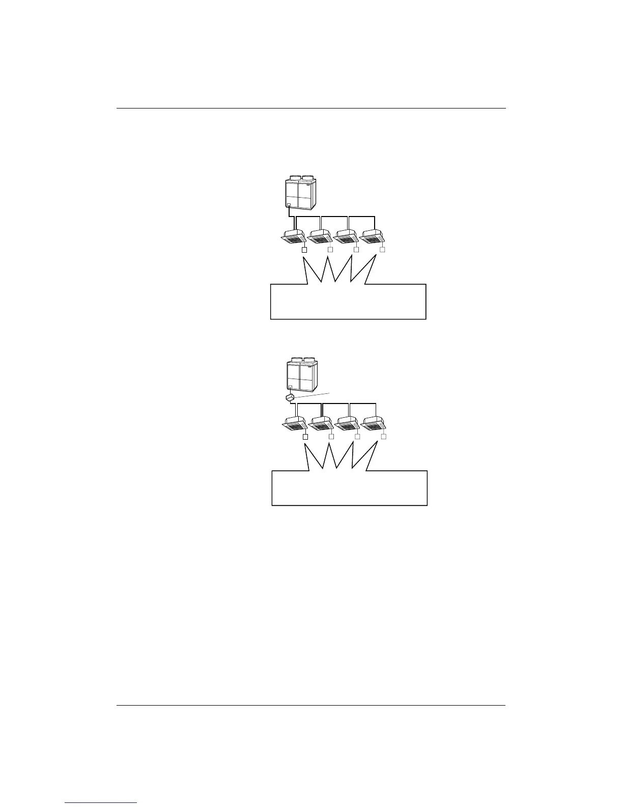 When the system is installed as shown below, it is necessary to designate the master remote controller.
