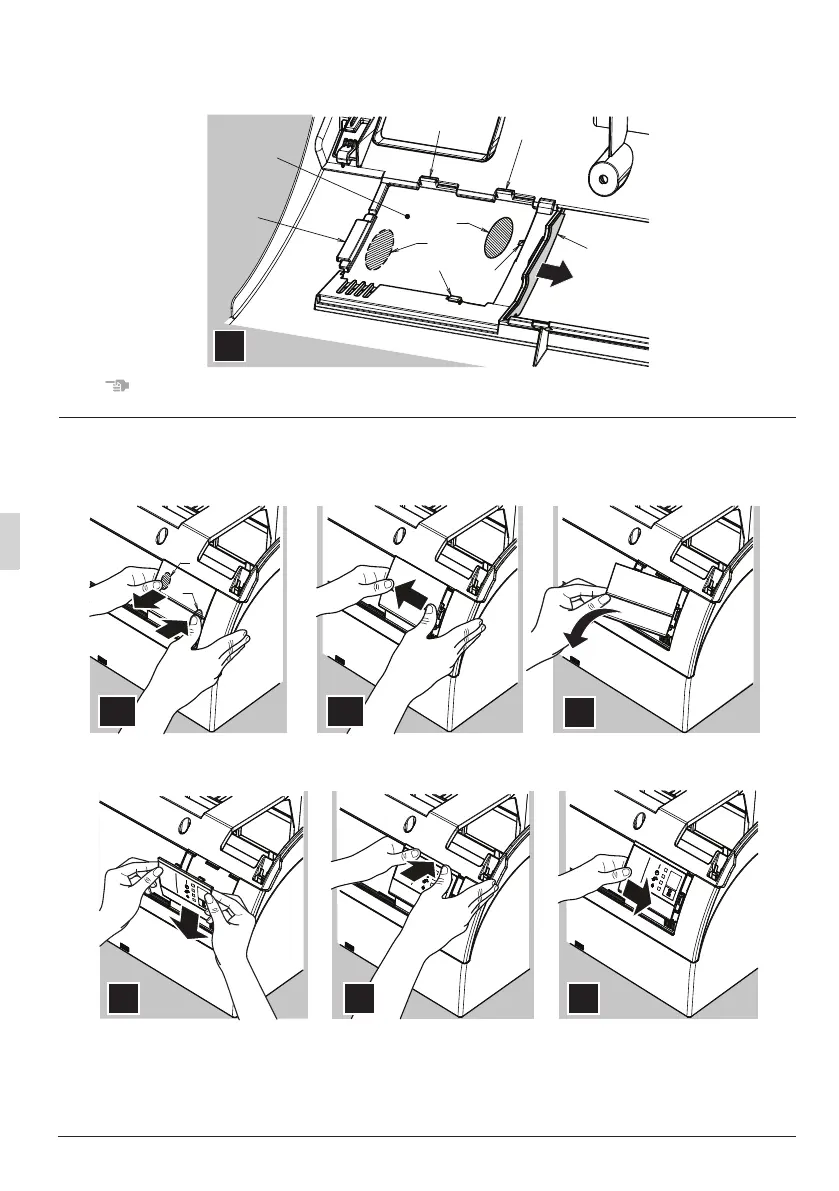 6. Slide the control panel as indicated to attach hooks 1 and 2 to their correct position.