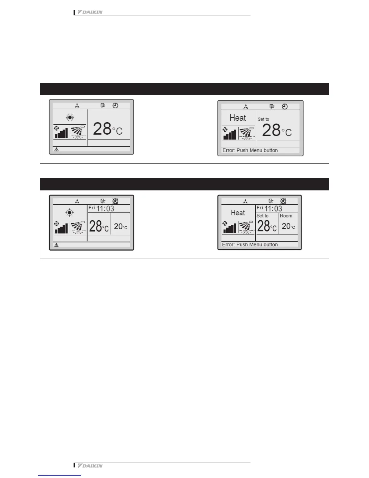 Notice: Depending on the outdoor unit model, the outdoor temp is not visible when the indoor unit is OFF.