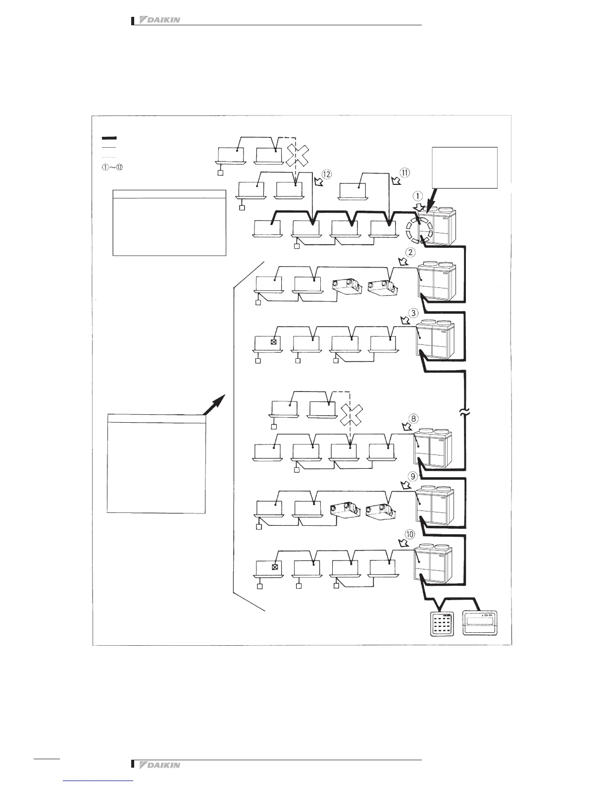 As shown above, the centralised remote controls schould be connected to the wiring between the outdoor units, wherever possible. (If