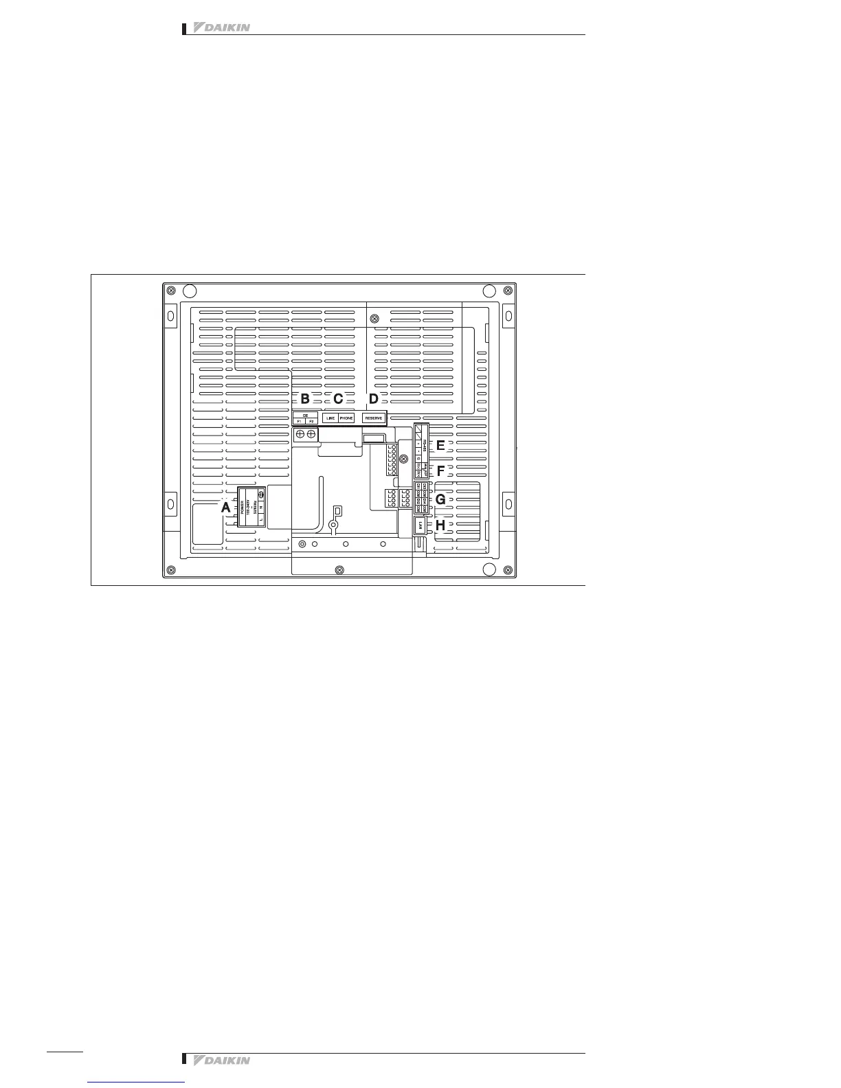 B [DIII] The communication line connection terminals for “DIII-NET”, which enables communications with DAIKIN’s air conditioning
