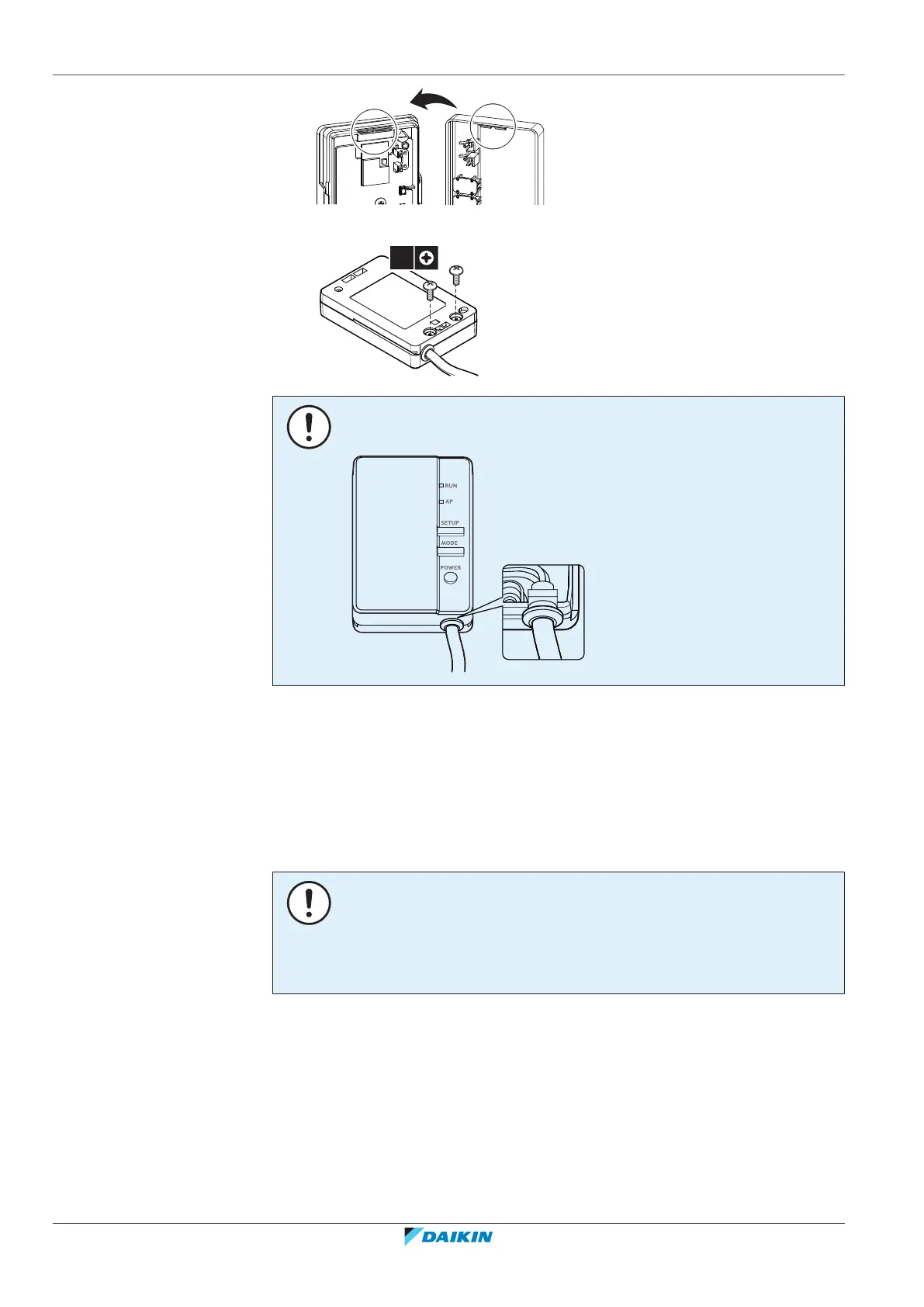After closing the adapter, check that the connection cable is securely fastened.