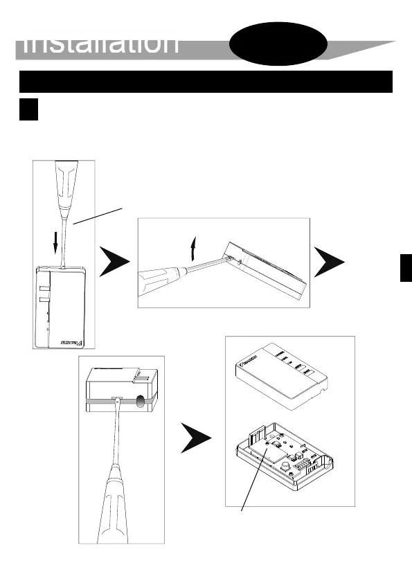 Press a regular screwdriver into the dent between the upper and lower