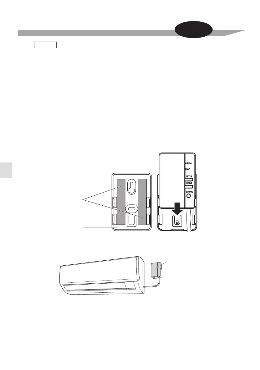 Position of the Wireless LAN connecting adapter on the wall/surface is fixed by double face tapes.