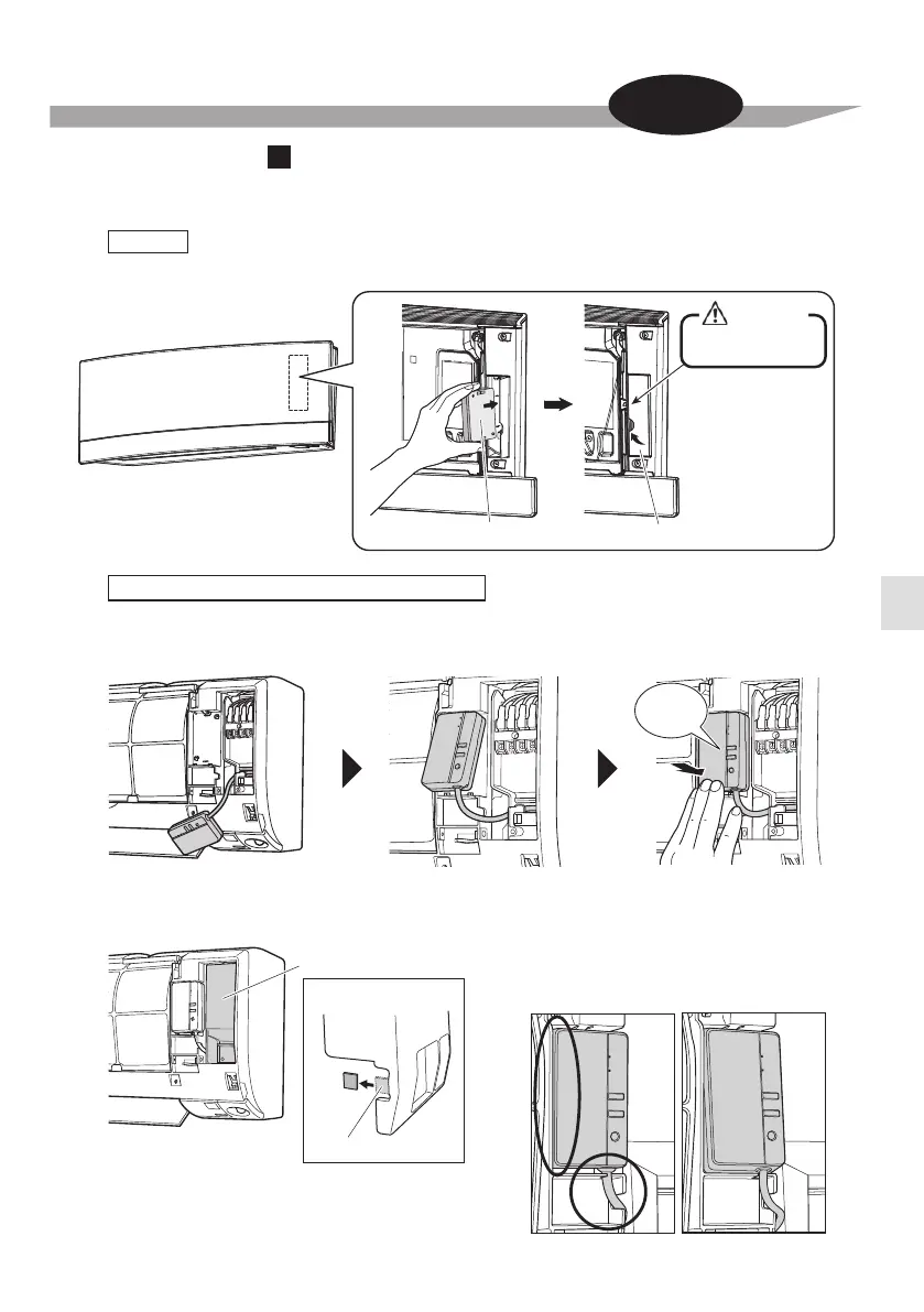 Grab the adapter case with your fingers, insert it back into the indoor unit and close the door.