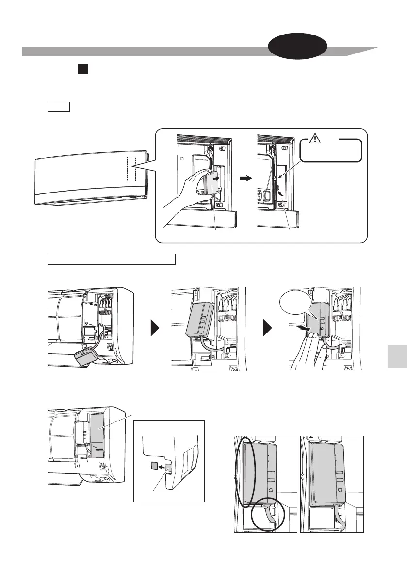 用手指抓住轉接器的外殼,插回室內機內,然後關上門板。