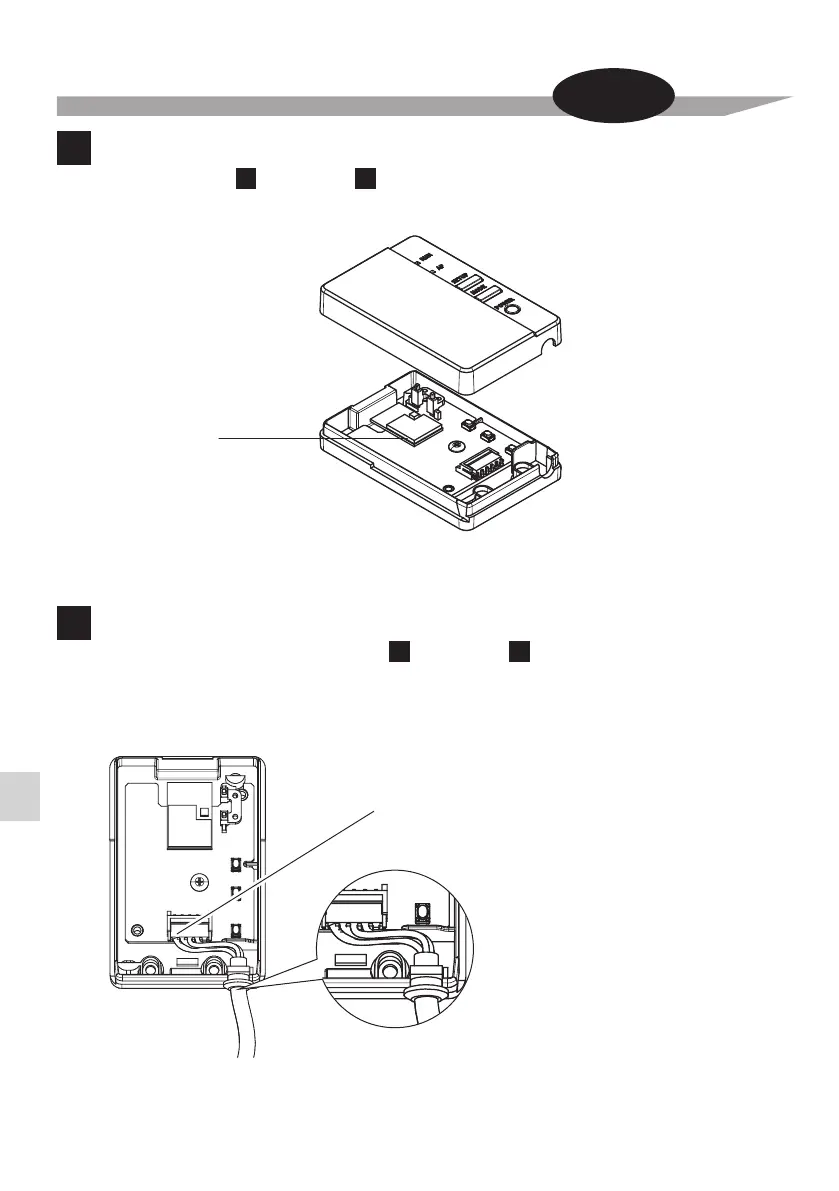 Kunci rakitan harnes kawat ke takik di casing adaptor penghubung LAN Nirkabel (bawah).