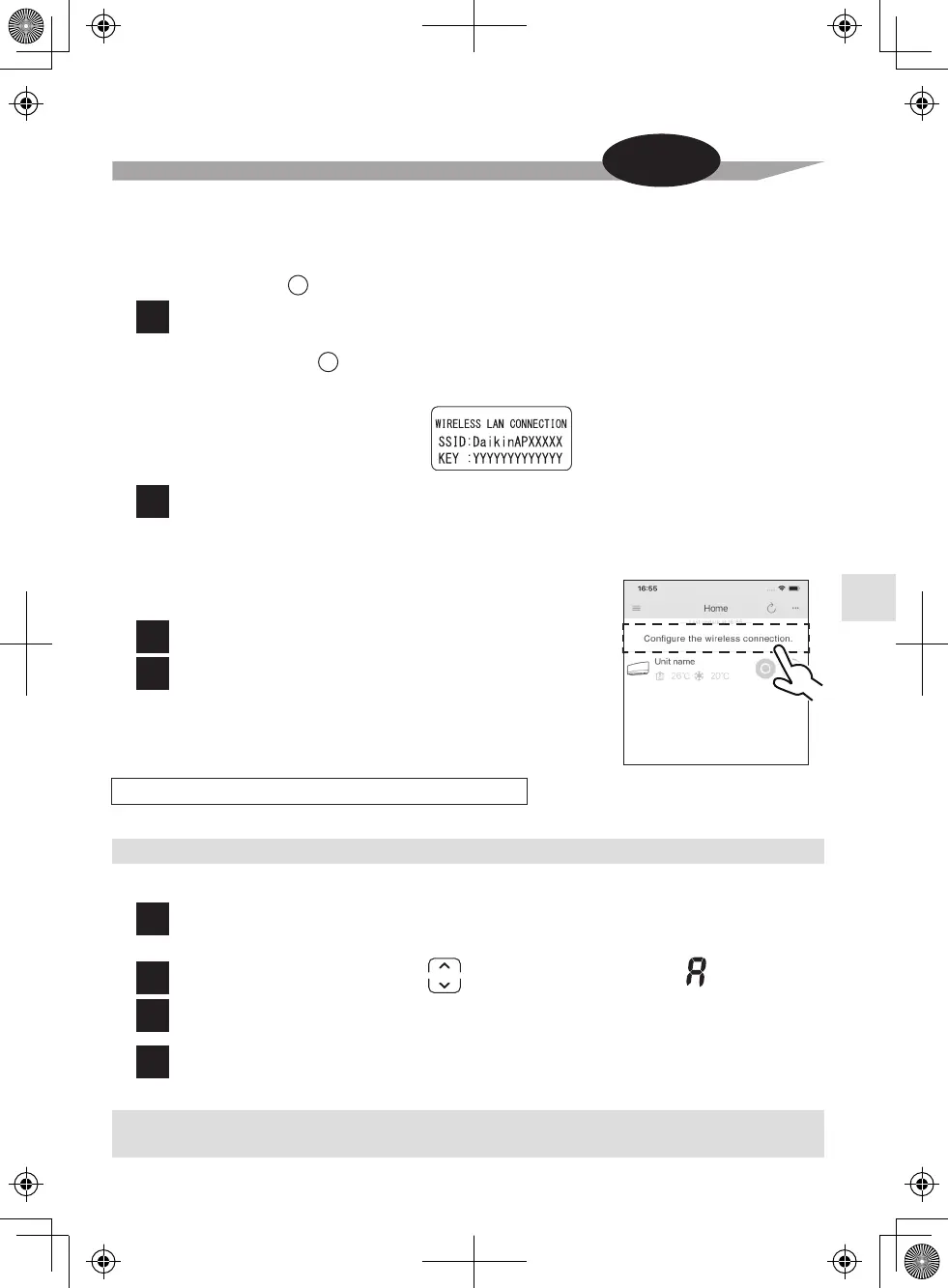 View available Wi-Fi networks on your smart phone or tablet and connect to the SSID (DaikinAP*****) printed