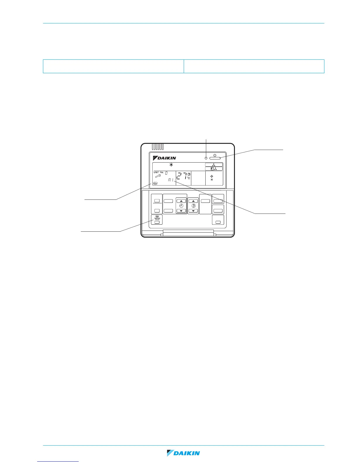 To enter Inspection menu, push the TEST button once. The symbol of an eye (inspection) will light up on the remote controller