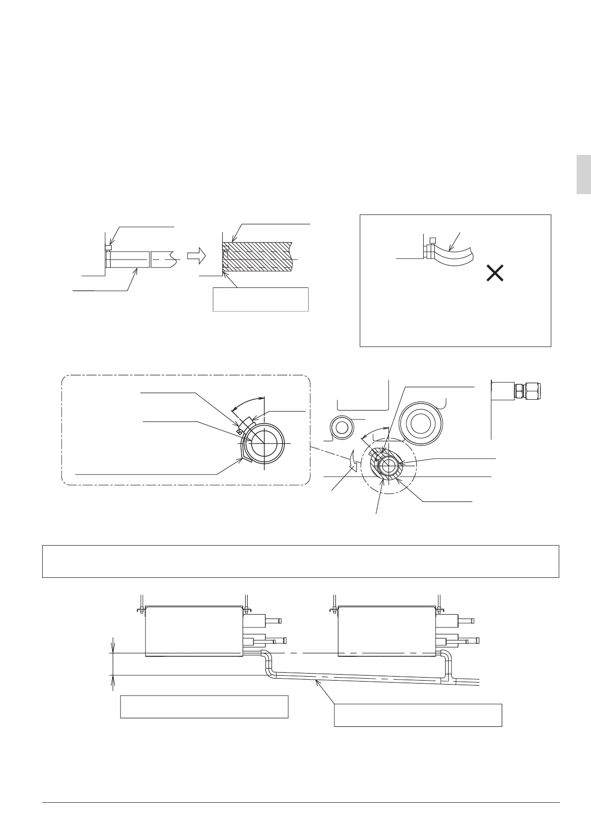 • Install support brackets at an interval of 1 to 1.5 m so that the pipe does not droop. (Refer to Fig. 4.)
