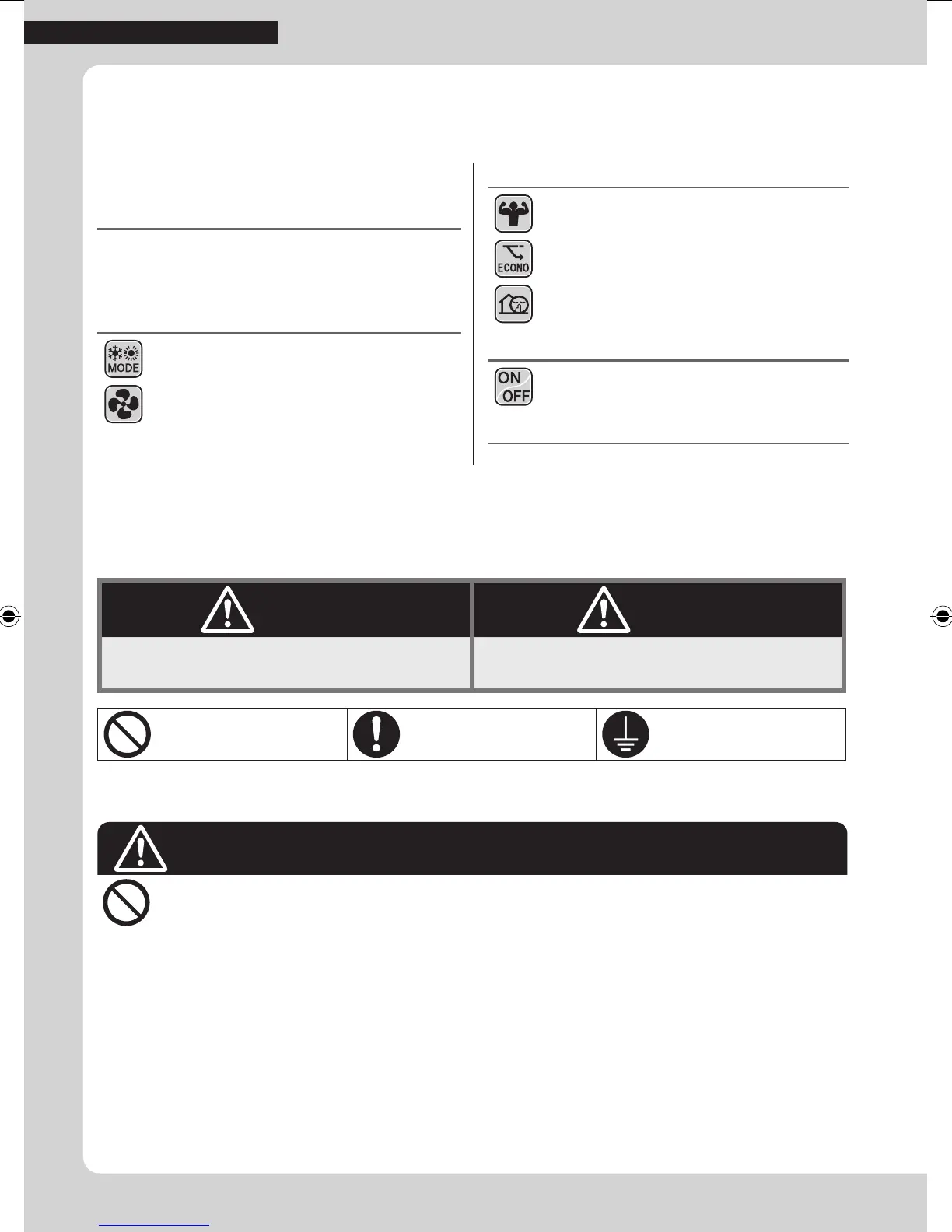 • Do not use ammable spray near the air conditioner, or otherwise re may result.