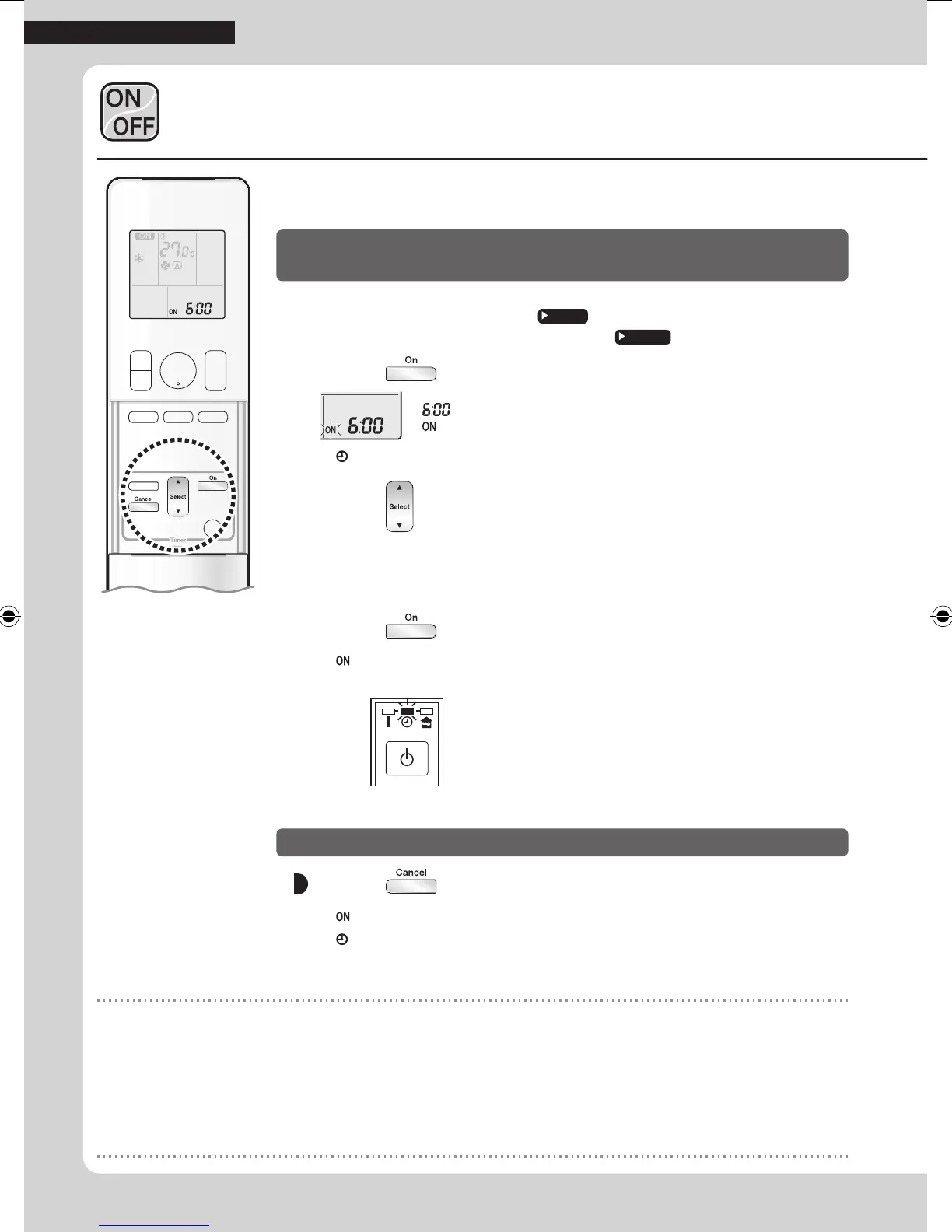• When using the ON/OFF TIMER to start/stop operation, the actual operation start/stop time may differ from the time set. (Maximum of
