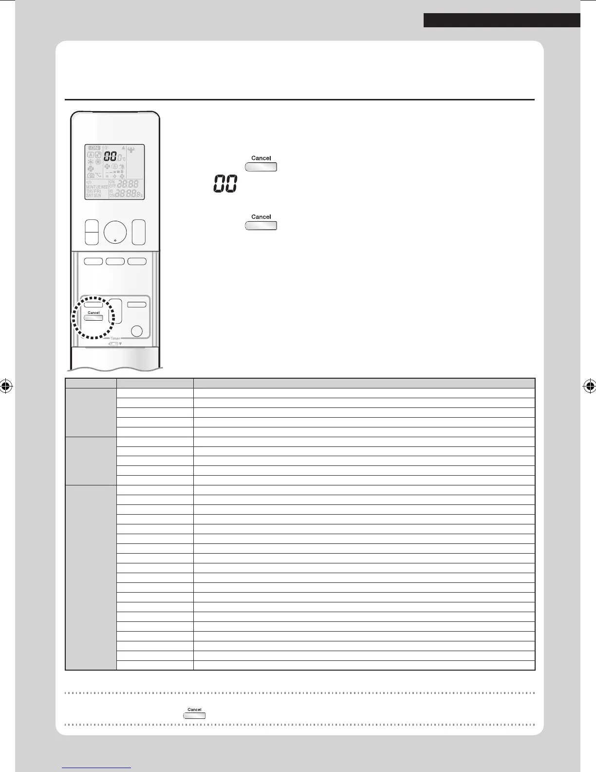 • The remote controller can receive relevant error codes from the indoor unit.