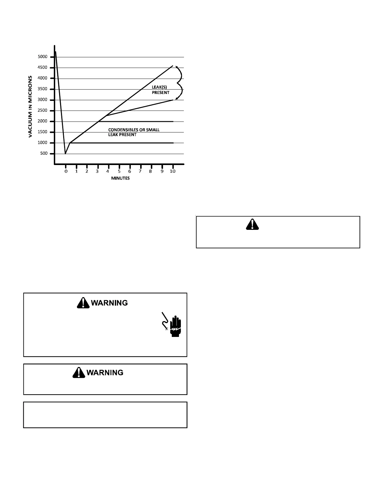 • If pressure rises above 2000 microns, a leak is present. Check